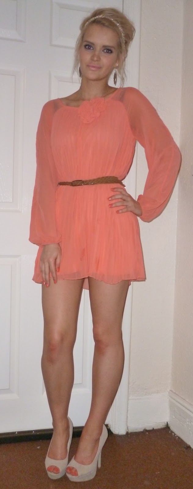 This was a dress that my boyfriend got me for Easter last year and as it's quite dressy I don't really get many chances to wear it, in fact I think last years holiday was the last time it had an outing so I thought it was about time I brought it out again. As you can see from the title and quite a few of my other posts such as coralista I cannot get enough of coral at the moment- coral dresses, coral blushes, coral lipsticks, coral nails...(not at the same time though I promise!) I think I love it so much because I find it's such a wearable colour that looks good with a tan so it's perfect for summer. I don't own many high necked, long sleeved dresses so it's quite refreshing to wear one and makes it totally fine that my legs are out quite a bit hahaa! With such a bright colour I didn't want to overload on the accessories too much so I teamed it with my nude heels, gold and brown accessories and a bronzed body and make up look.